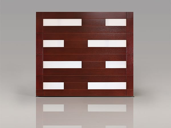 Garage door Contemporary Garage Doors Contemporary and modern garage doors feature fun and modern trends. They have sleek designs with geometric glass windows, minimalist hardware, and unique materials or faux designs printed on metal paneling. Modern glass garage doors are glass panels in a metal framework, and the glass can be transparent, opaque, or one-sided to create an airy, modern feel. Contemporary garage doors also prioritize flush panel designs for greater energy efficiency. These doors are functional, durable, and safe, often produced by leading industry brands like Amarr, Clopay, Wayne Dalton, and Martin.